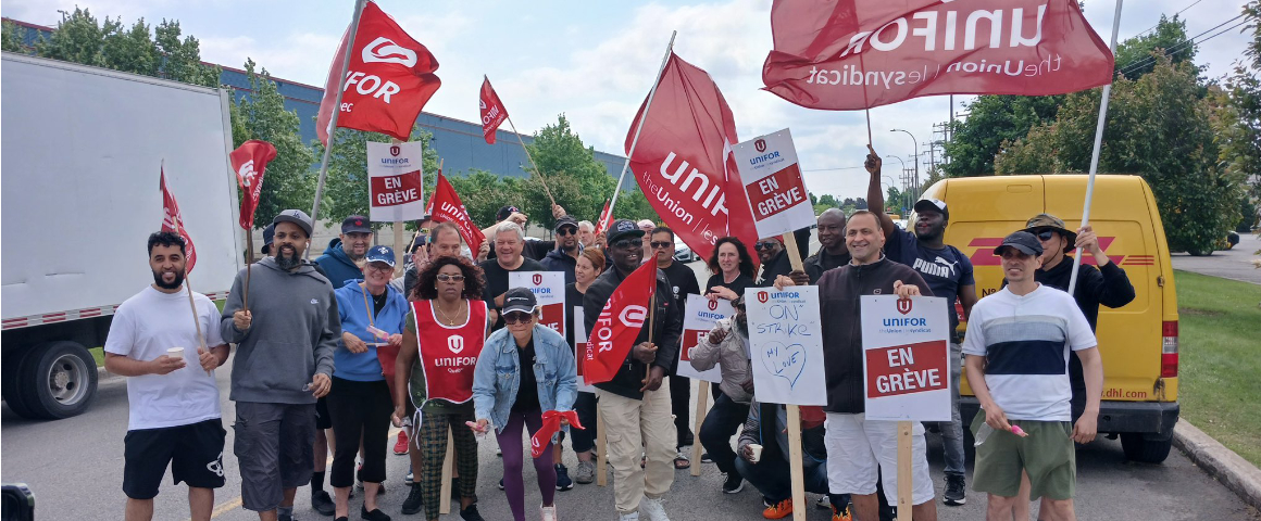 On June 8, after a lockout by the employer, more than 2,000 Unifor members at DHL Express Canada went on strike across the country, with a 97-percent mandate from workers. DHL employees in Canada have been without a collective agreement since the end of last year, and in negotiations with DHL since October 2024.
